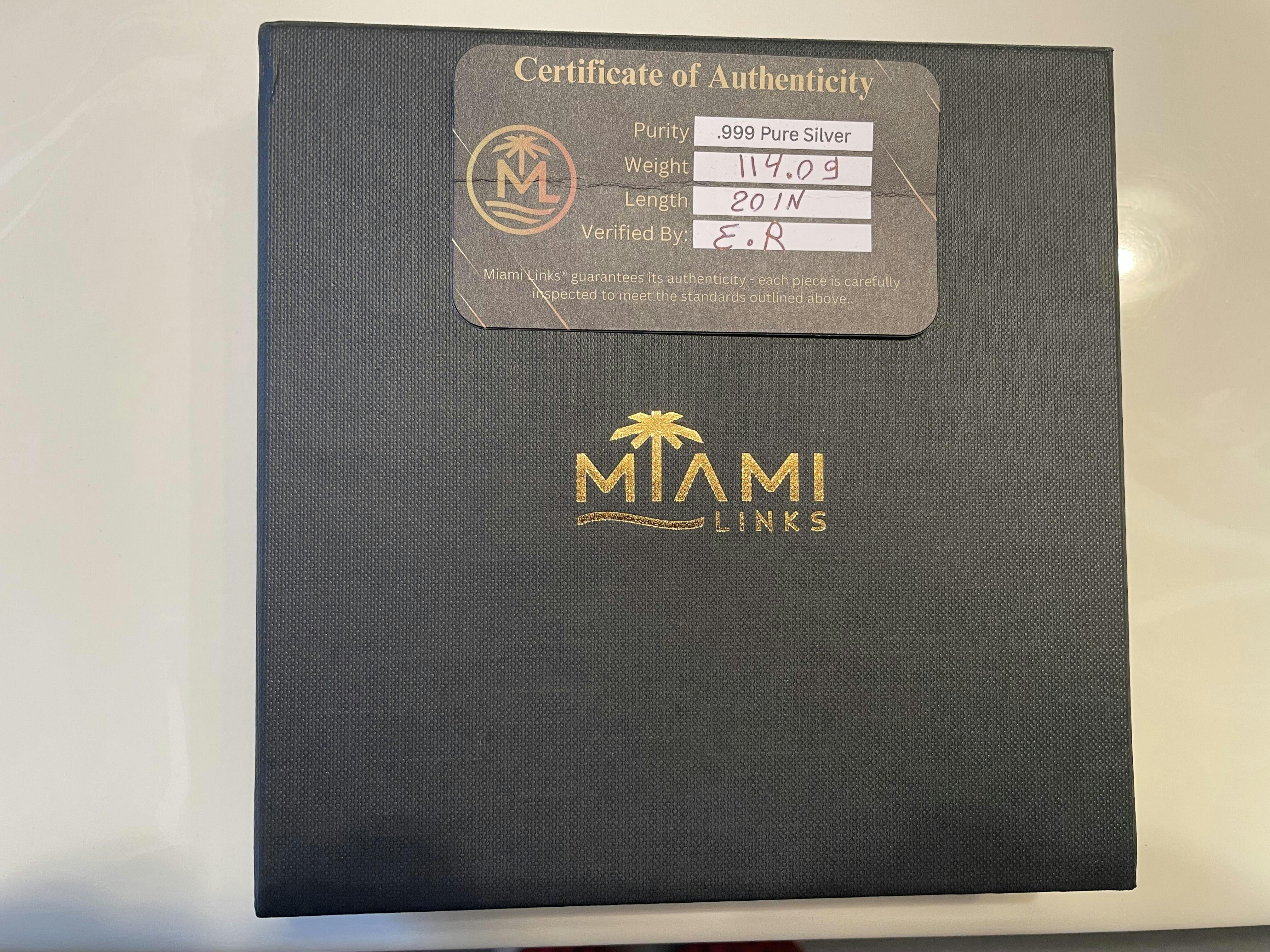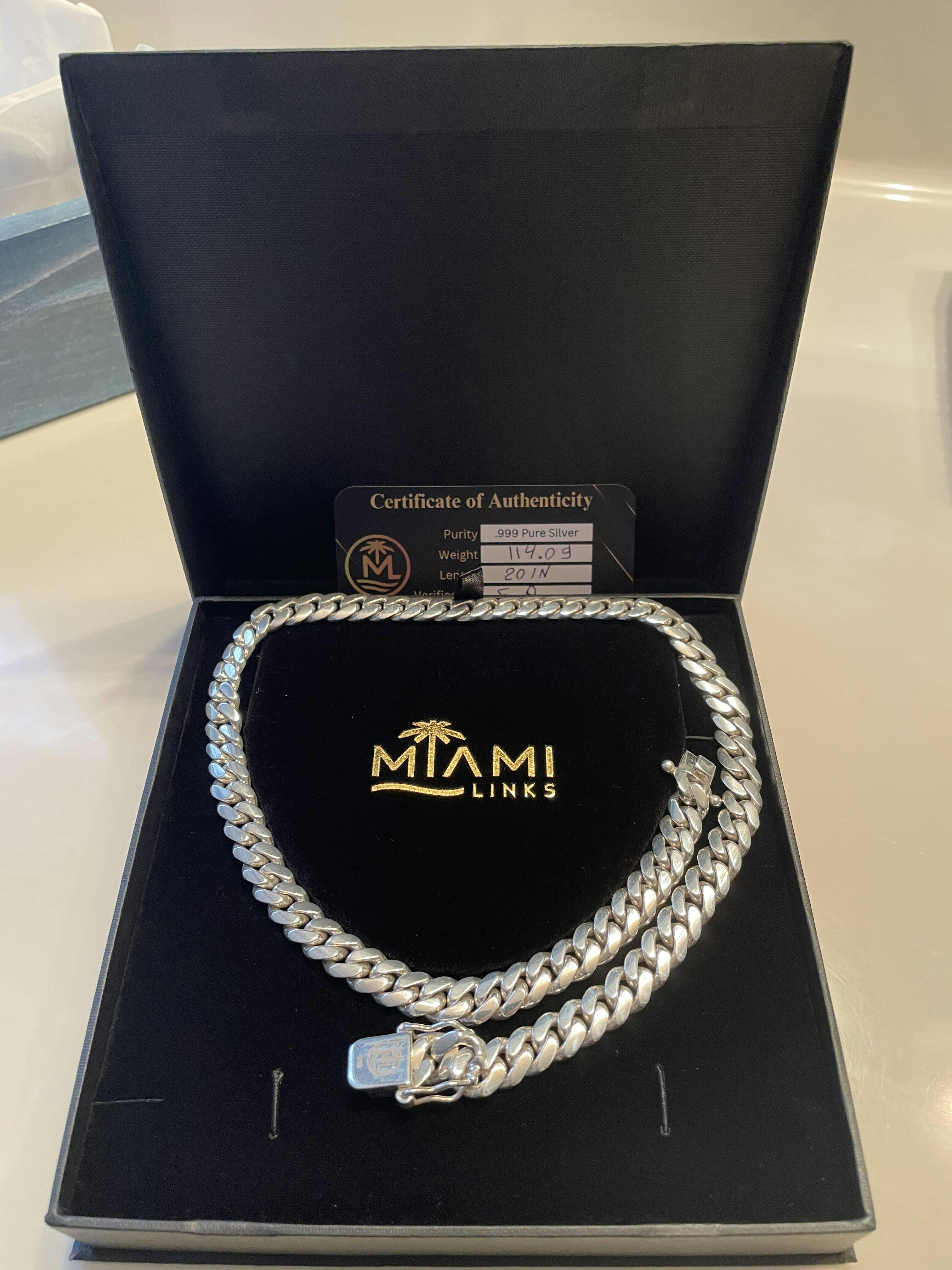 This is my second purchase from Miami Links. The silver chain is high quality and the ML logo on the clasp is a nice touch. Communicated with Dan on a shipping request and he was very helpful, the customer service is exceptional 10/10. Do not hesitate to make your purchase!