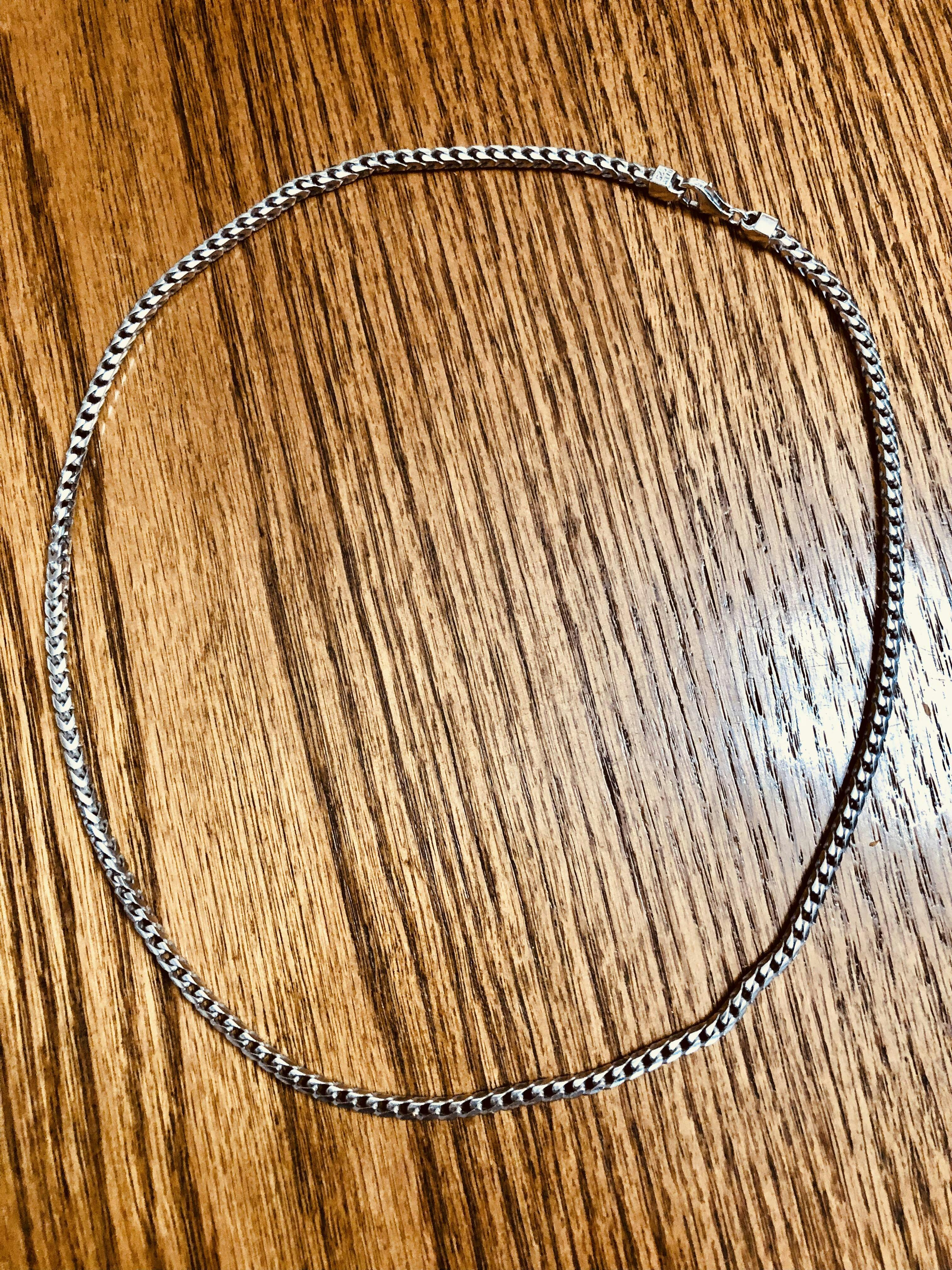 This 3.5mm silver franco chain is crafted in Italy in solid sterling silver and rhodium plated for maximum protection and shine. The luxurious silver chain for men is stamped with the .925 quality hallmark symbol for quality guarantee.