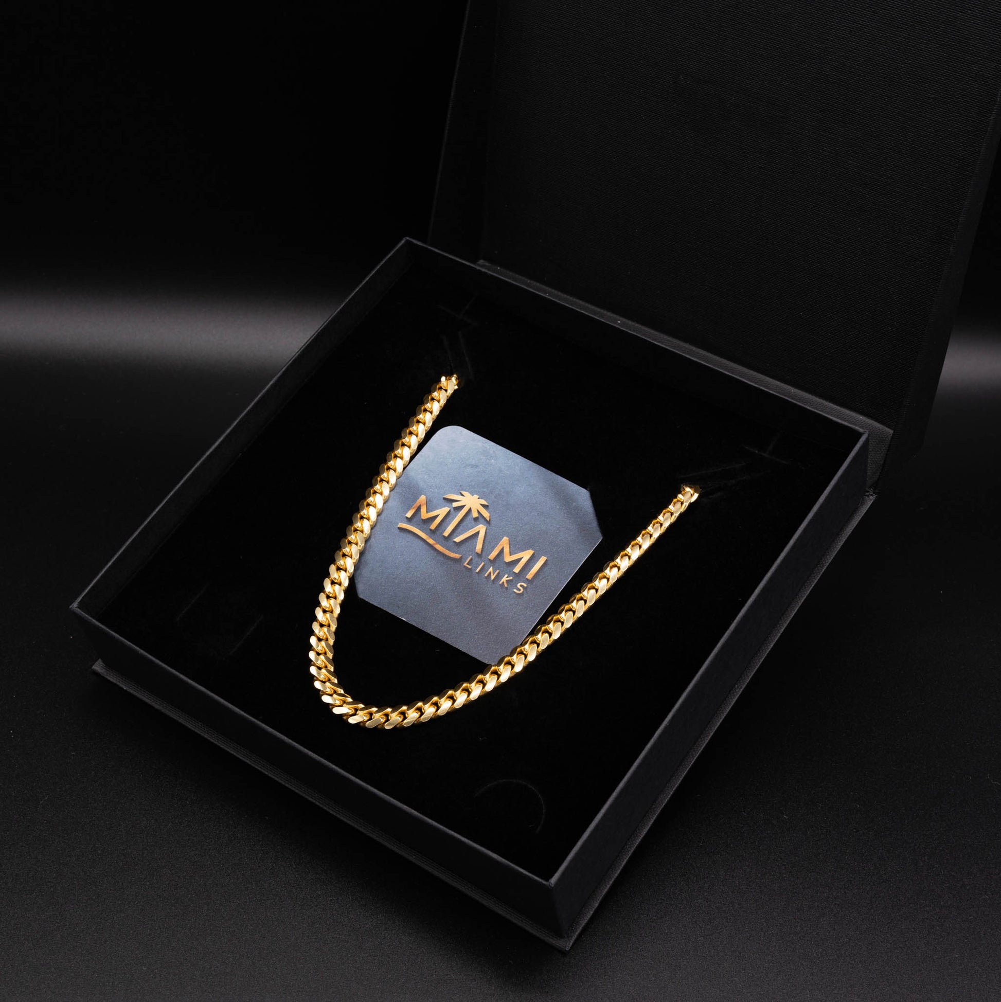 I am very impressed with the quality of my chain. I have solid gold and gold over silver and this chain’s craftsmanship is outstanding. I’m looking forward to buying another chain to stack two Miami Links products.