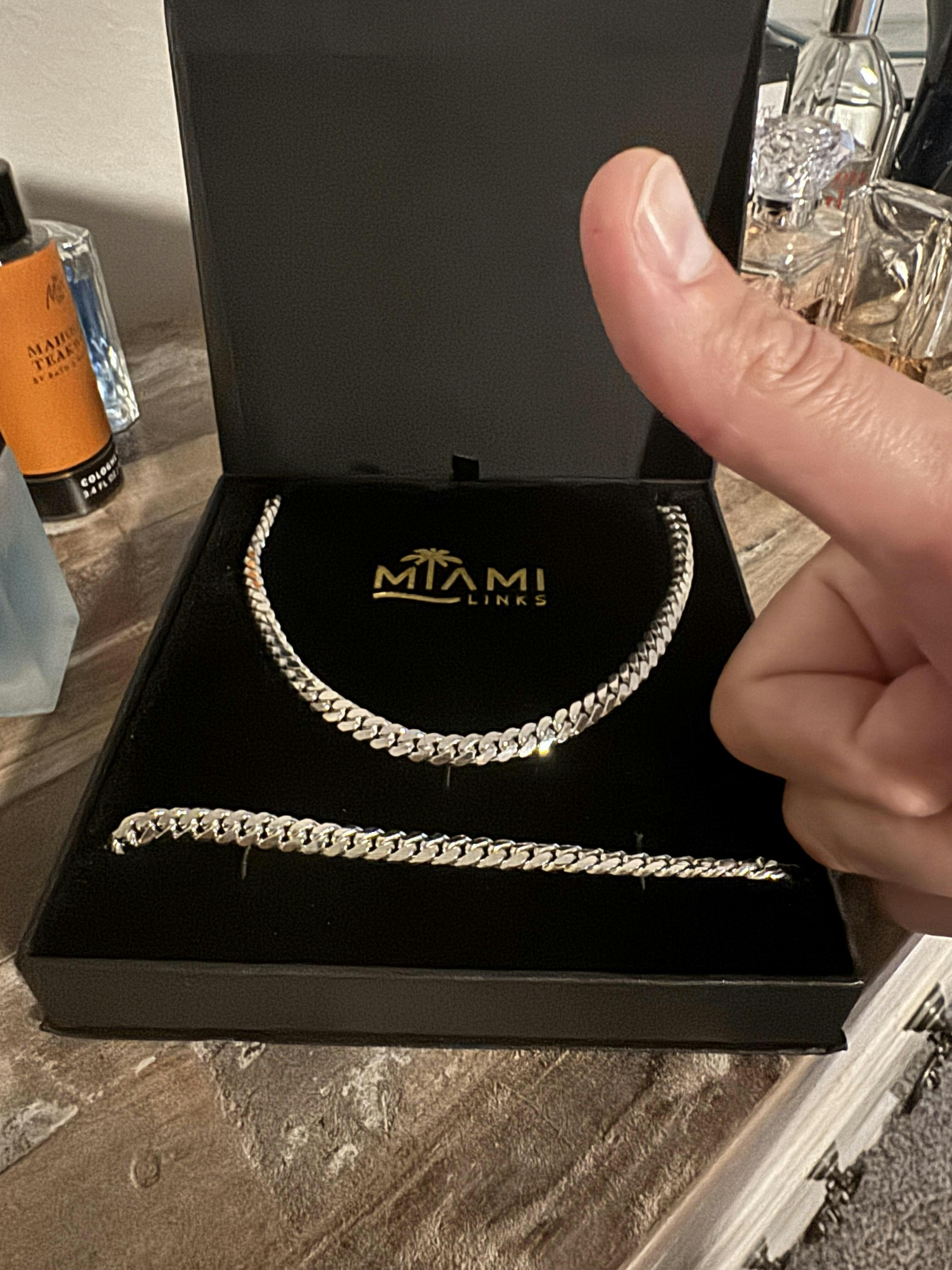 This is my second purchase from Miami Links. The silver chain is high quality and the ML logo on the clasp is a nice touch. Communicated with Dan on a shipping request and he was very helpful, the customer service is exceptional 10/10. Do not hesitate to make your purchase!
