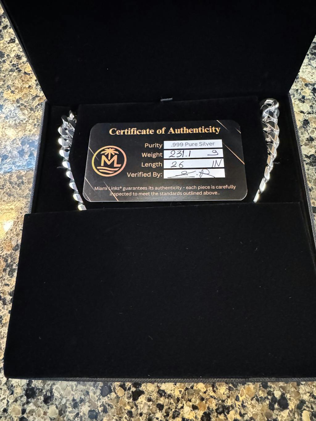 When the package was delivered, that made me feel very special with the presentation, while opening it. The chain is built with excellent craftsmanship. I do not have to worry about it ever falling off, due to the double security locking. Great job to Miami Links.