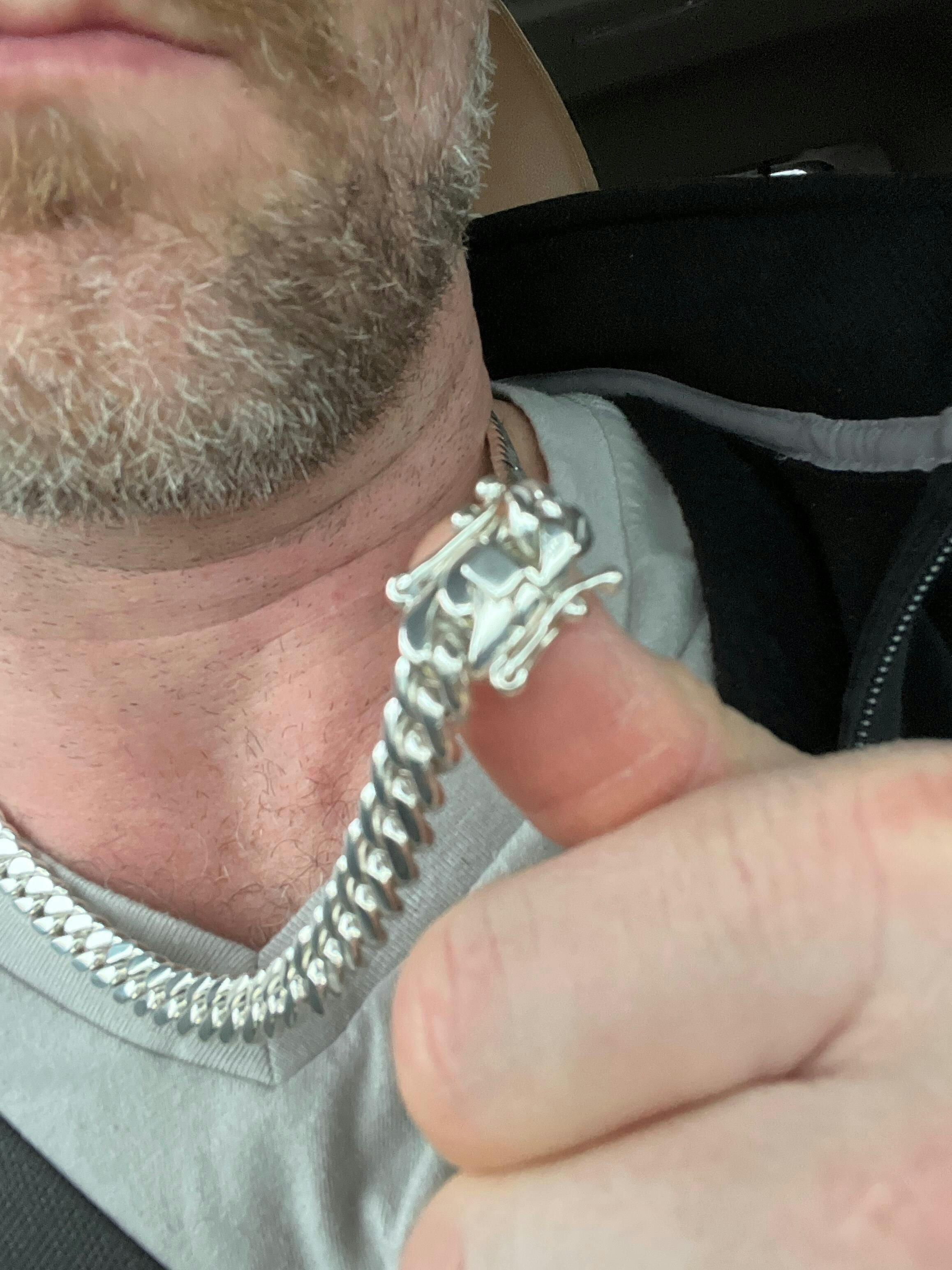 Whether worn solo or paired with other chains, this men’s silver Cuban chain is designed for everyday strength and standout style. Cuban link guy