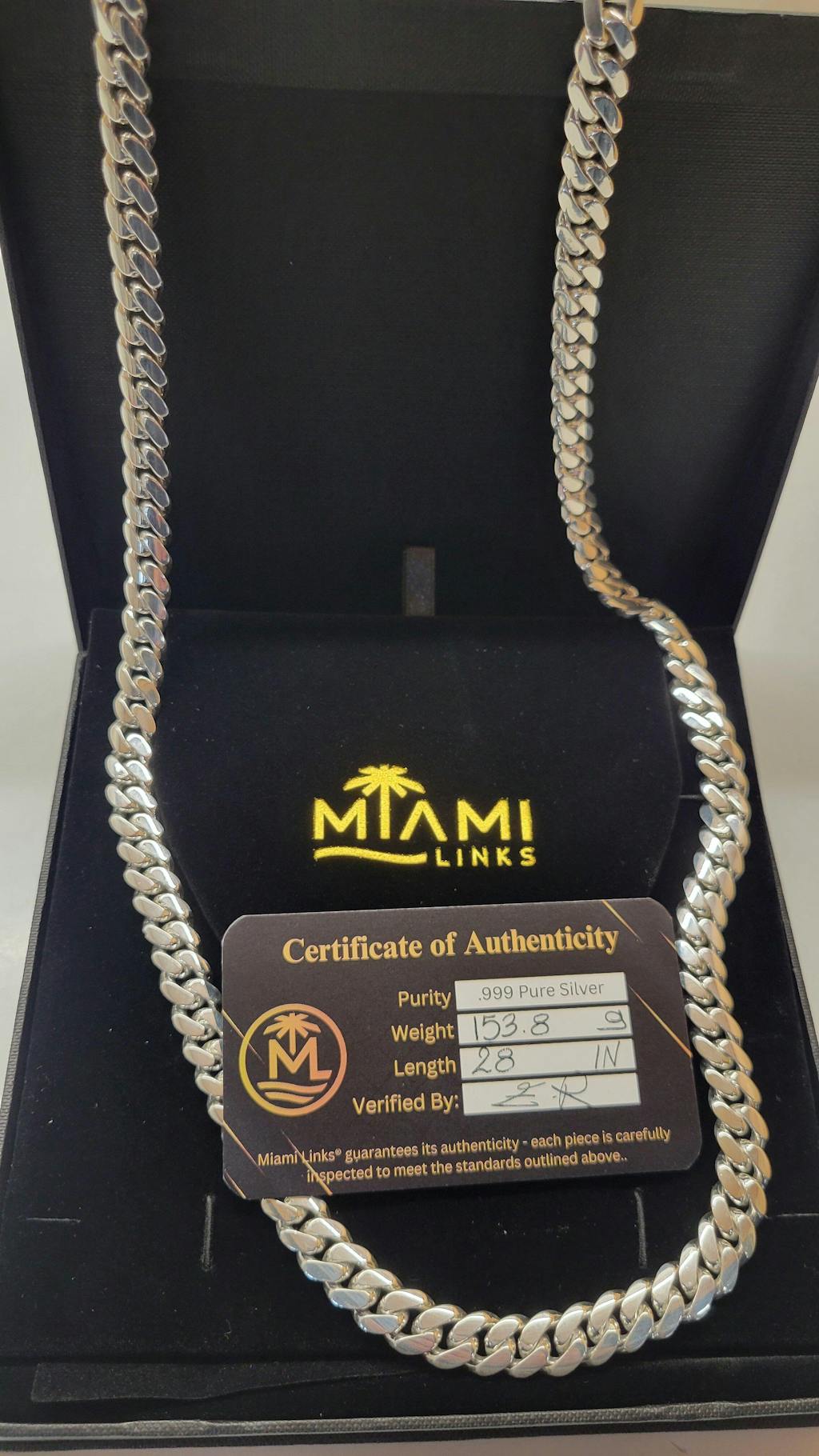 Just received my Cuban 10mm, 22" .999 fine silver necklace and I couldn’t be happier. The weight, shine, and craftsmanship are exactly what I was hoping for — solid, clean links with that authentic silver look and feel.
