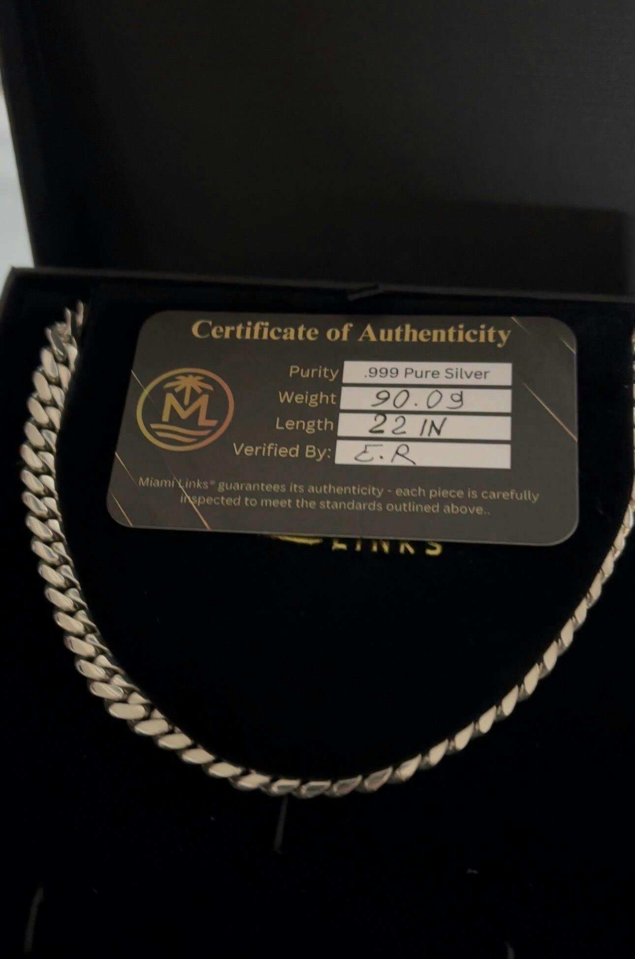 8mm Pure Silver Miami Cuban Chain – Handmade in the USA crafted from .999 Silver