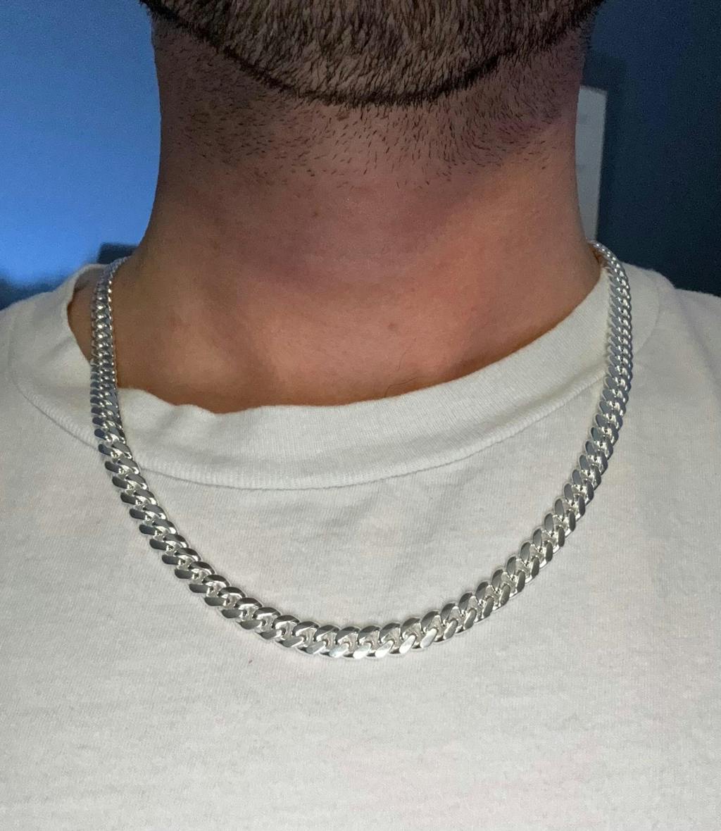 This chain exceeded my expectations x100!! I love the color and shine of the unplated silver. You can really see the difference in color between this chain and my rhodium plated silver pieces and I LOVE it!! Can’t wait to see my .999 8mm bracelet when it arrives! Thank you Miami Links, from the bottom of my heart!! I’ll be back for more, no doubt. I now have a piece of Miami with me in St. Louis