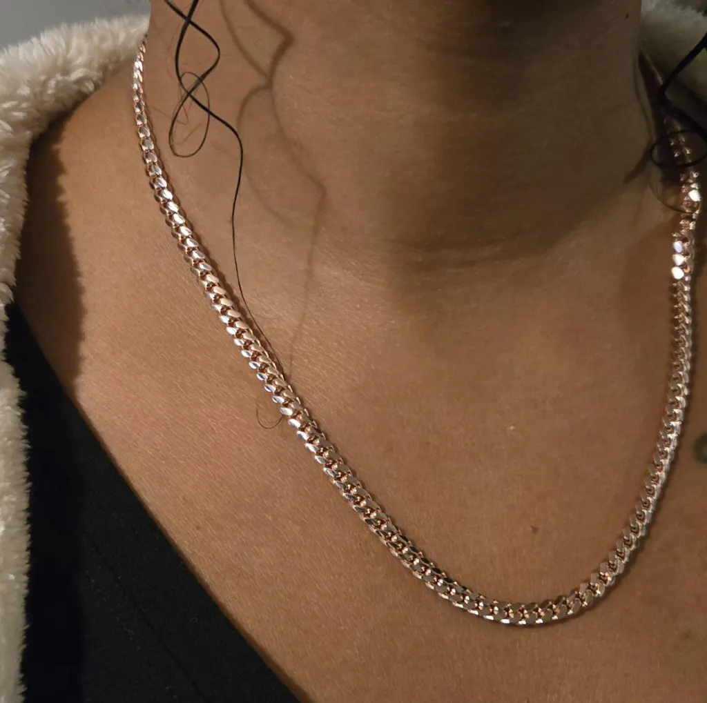 This 5mm Rose Gold Miami Cuban chain brings a sleek, low-profile version of the iconic Cuban look—refined enough for daily wear, bold enough to stand out. Handcrafted in Italy with real 18K gold over a solid 925 silver base, this chain is made to deliver lasting shine and strength. It features our custom micro-infused large clasp, redesigned for a smoother, easier fit—so it’s always ready when you are. Whether you’re dressing up or keeping it casual, this piece adds just the right amount of edge. Wear it on its own for a subtle flex or layer it with other chains for a look that’s all you.